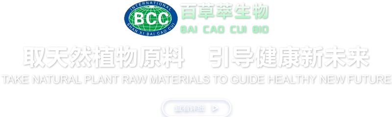 陜西百草萃生物科技有限公司,位于陜西省咸陽市秦都區(qū)濱河西路1號大秦御港城,公司成立于1996年,主要從事天然植物種植、研發(fā)、生產(chǎn)、加工、銷售為一體的高科技企業(yè)。主營醫(yī)藥原料、保健品原料、化妝品原料,精細化工原料。公司致力于人類健康保護事業(yè)“ 以科技為動力,以質量求生存” 的本質,依托陜西高新科技技術人才和科研優(yōu)勢,已形成多學科、全方位、高層次的技術管理精英團隊。充分利用秦巴山區(qū)的天然藥物資源,歷經(jīng)多年發(fā)展為打造百草萃生物品牌奠定了基礎。